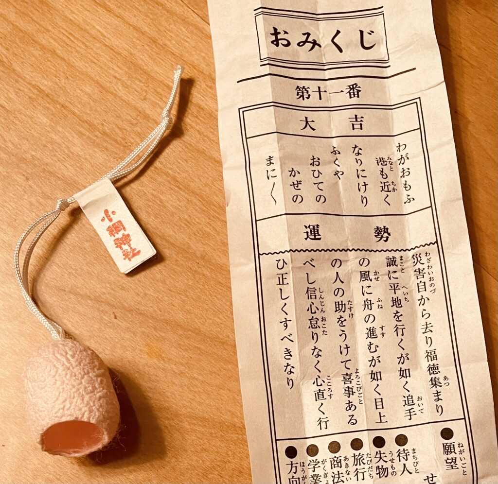 小網神社のおみくじは、まゆ玉に入ってて可愛すぎました。