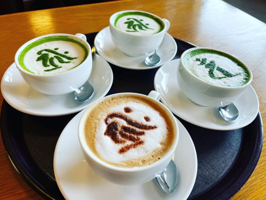 ↑ 比叡山延暦寺会館の梵字ラテアート。イノシシ年生まればっかり。笑